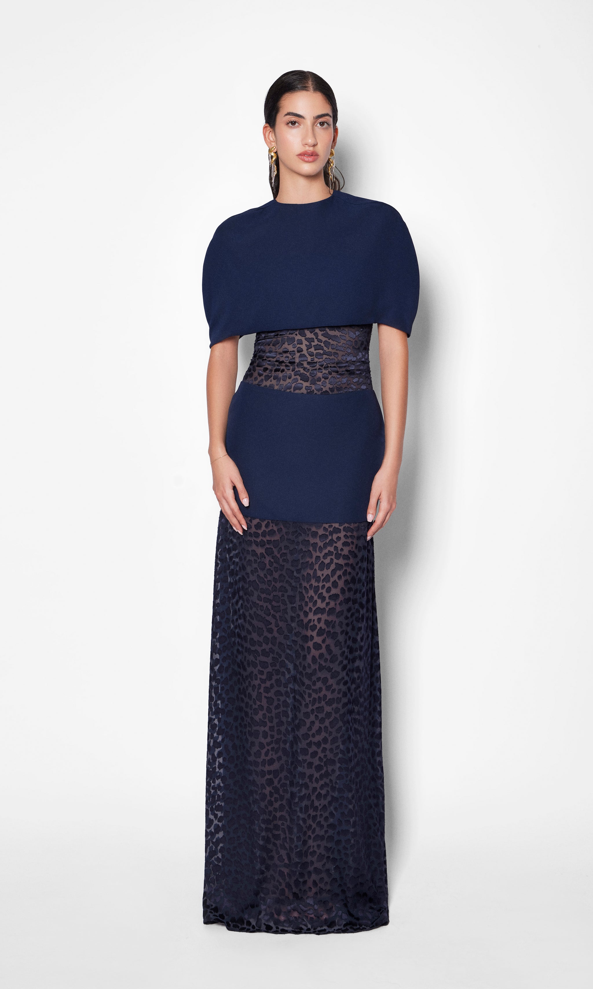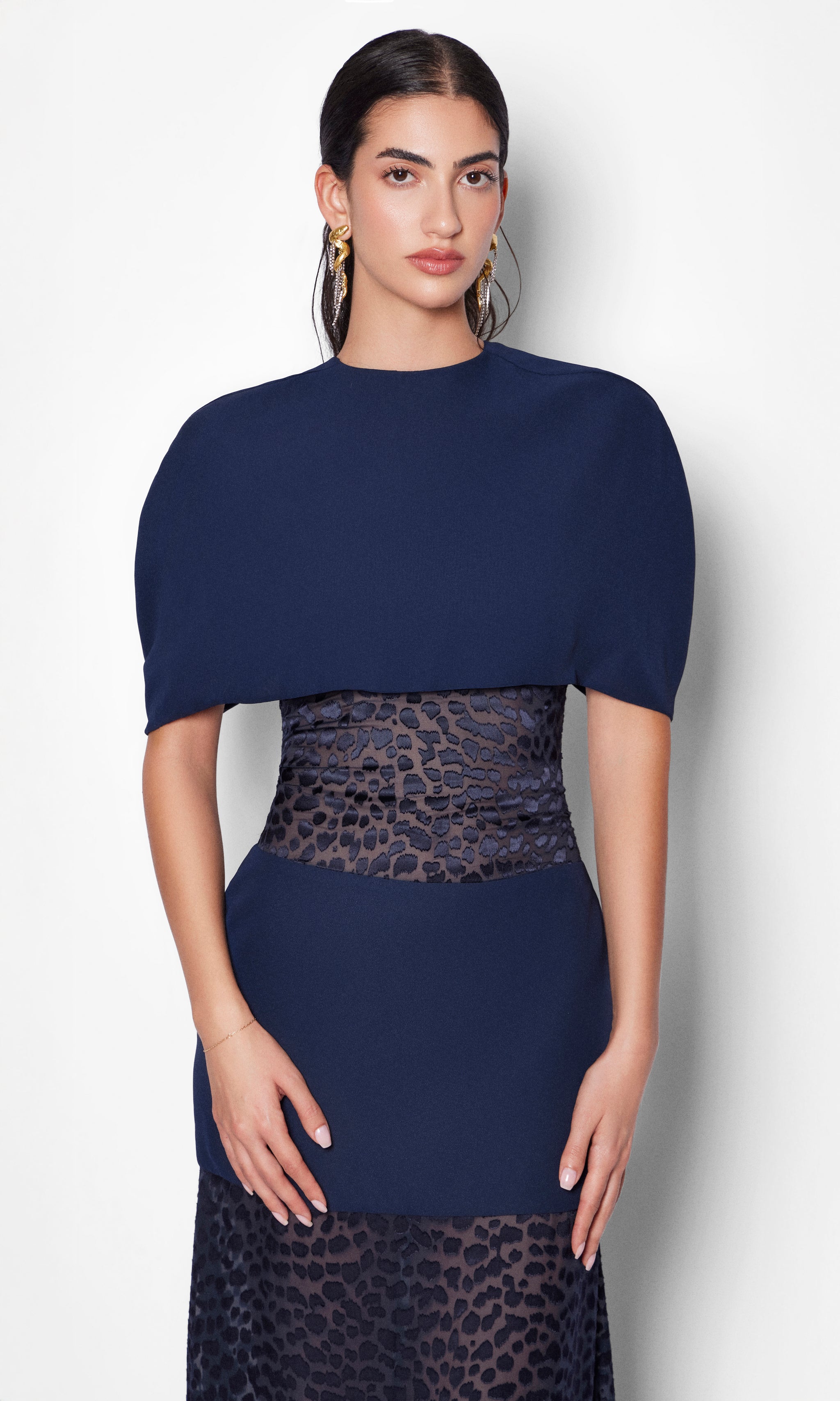 A matching cape to compliment RERUNS's dress. Cut and lined in mousseline, this cape will compliment your dress and grant you a coveted entrance wherever you go.